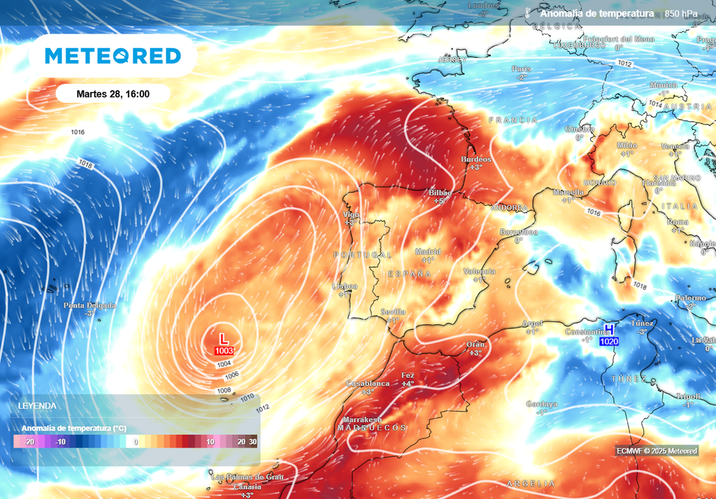 La circulación atlántica, con masas de aire muy templadas y húmeda, favorecerá a que las temperaturas sean suaves en amplias del territorio desde mañana mismo, ya que esta configuración dificulta la llegada de masas frías. En diversas comunidades notarán un aumento considerable de las temperaturas diurnas respecto a las de hoy.