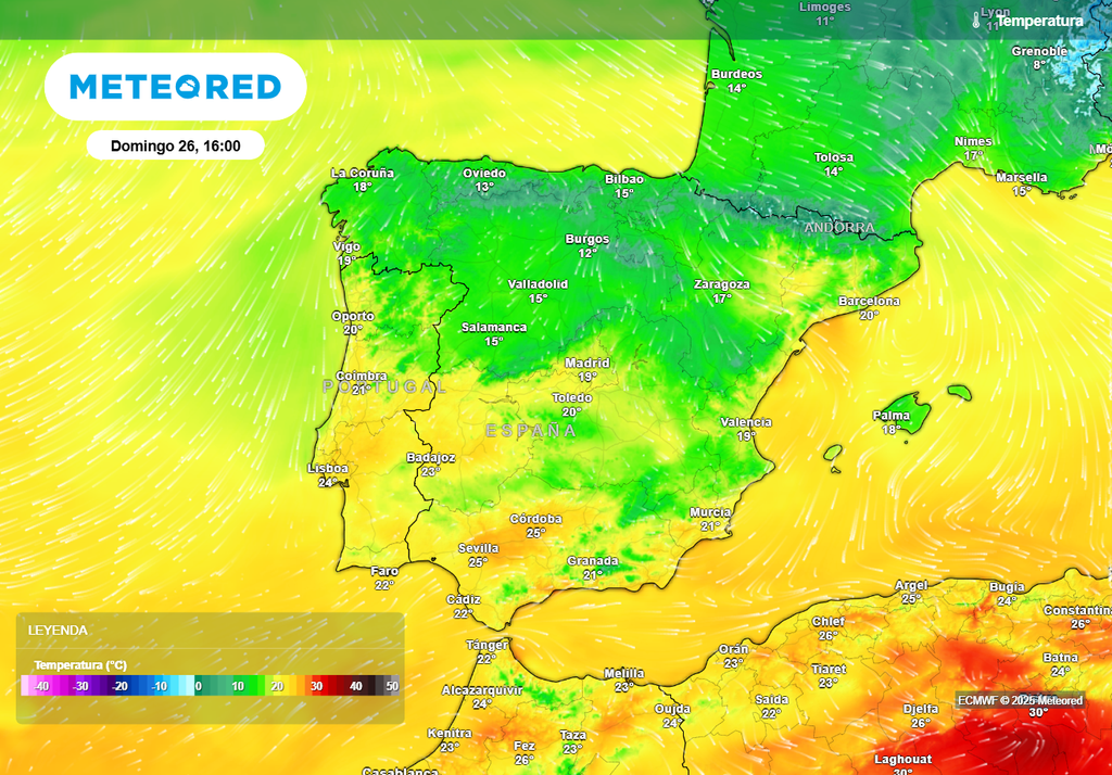 El contraste térmico será especialmente evidente en la mitad sur, y en especial en el interior sureste. Allí, las máximas caerán entre 6 y 10 ºC respecto a los valores diurnos que se registrarán este sábado, poniendo fin al episodio cálido que ha dominado gran parte de octubre.
