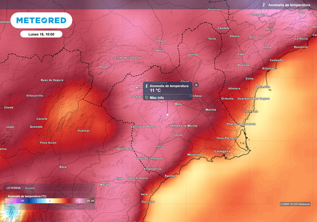 A pesar de ser una de las zonas más cálidas de Iberia, mañana hay que contar con elevadas anomalías térmicas en la zona, incluso a primeras horas de la mañana.