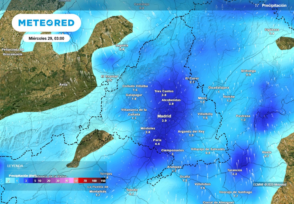 De cara al fin de semana, seguirán produciéndose algunas lluvias en Madrid y en el resto de la comunidad, si bien según nuestro modelo de referencia no se esperan que sean ni persistentes ni intensas.