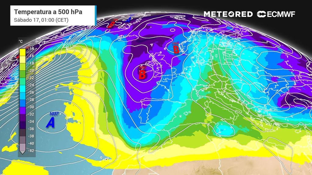 La borrasca principal procedente de Groenlandia se debilitará, pero la presencia de una bolsa de aire muy frío en altura permitirá el desarrollo de varias bajas secundarias en nuestro entorno.