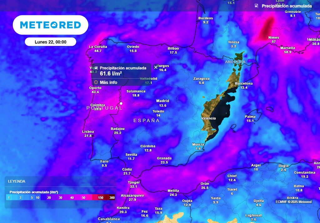 Más de 30 l/m2 en 7 comunidades: entre mañana y el domingo nos cruzará un frente frío muy activo
