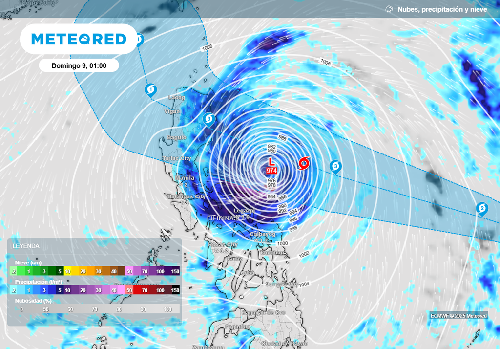Por caso, la temperatura superficial del océano Pacífico al este de Filipinas ahora supera los 30 ºC. Justamente este país será directamente impactado por este ciclón tropical mayor, después de que hace pocos días el tifón Kalmaegi lo atravesara produciendo inundaciones de las que recién ahora el país intenta recuperarse.