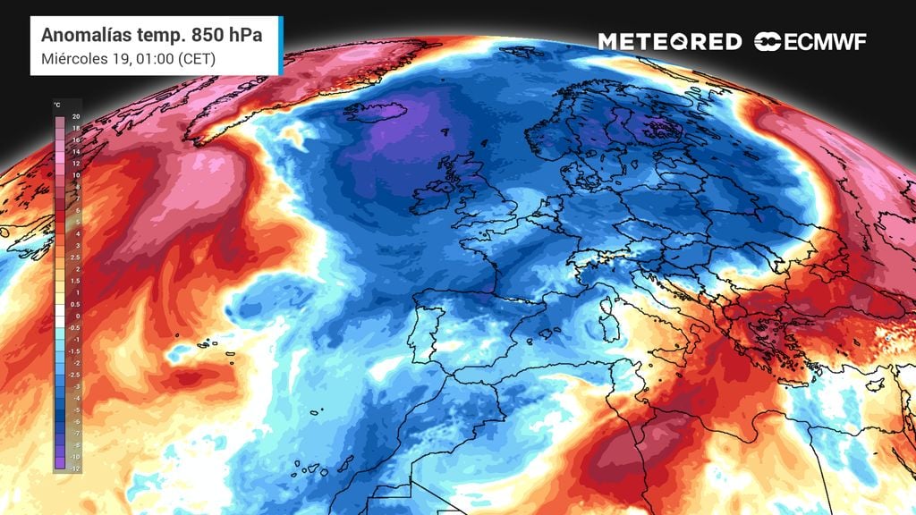 Este escenario dará lugar a la primera entrada generalizada de aire polar ártico procedente de latitudes altas hacia Europa, generando un desplome del mercurio muy notable en España.