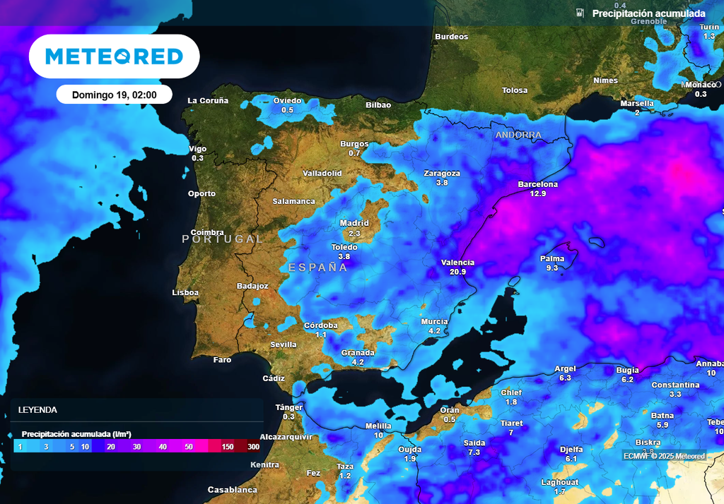 La semana comenzará con lluvias intensas en el Mediterráneo debido a la persistencia del bloqueo británico y a la entrada de aire frío en altura, pero la situación podría cambiar a finales de semana, cuando podrían acercarse borrascas y sus frentes desde el Atlántico.