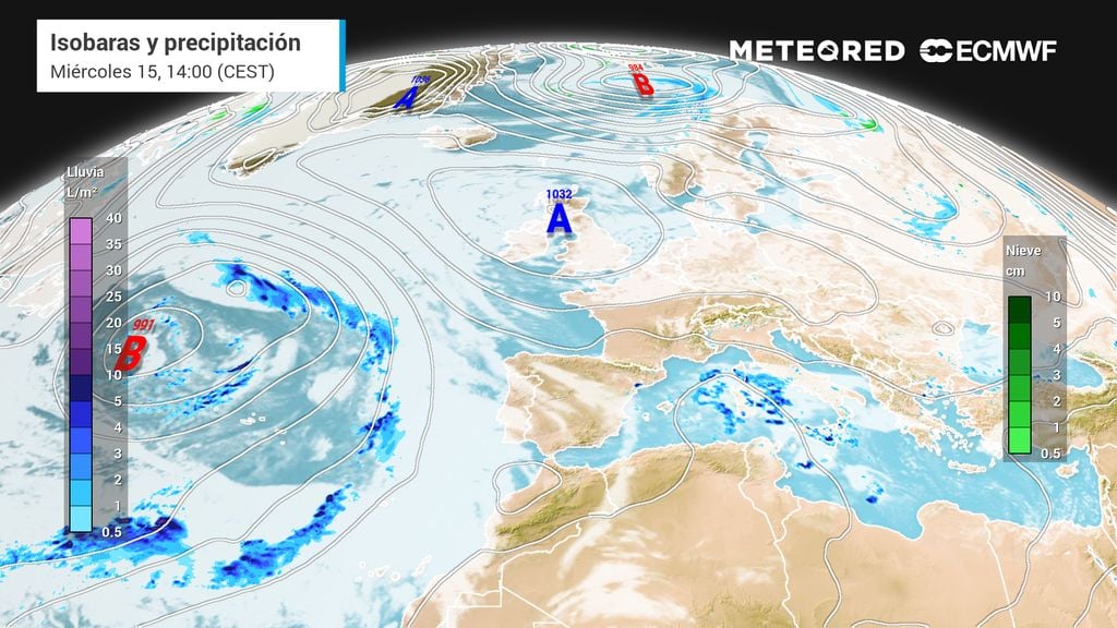 Como ya explicamos en Meteored, Alice es historia desde ayer, pero eso no significa que vaya a dejar de llover. Durante la primera parte de esta semana se mantendrá el bloqueo anticiclónico en las islas británicas, que seguirá impulsando vientos de levante de largo recorrido marítimo. Esto probablemente cambiará a partir del viernes, como veremos más adelante.
