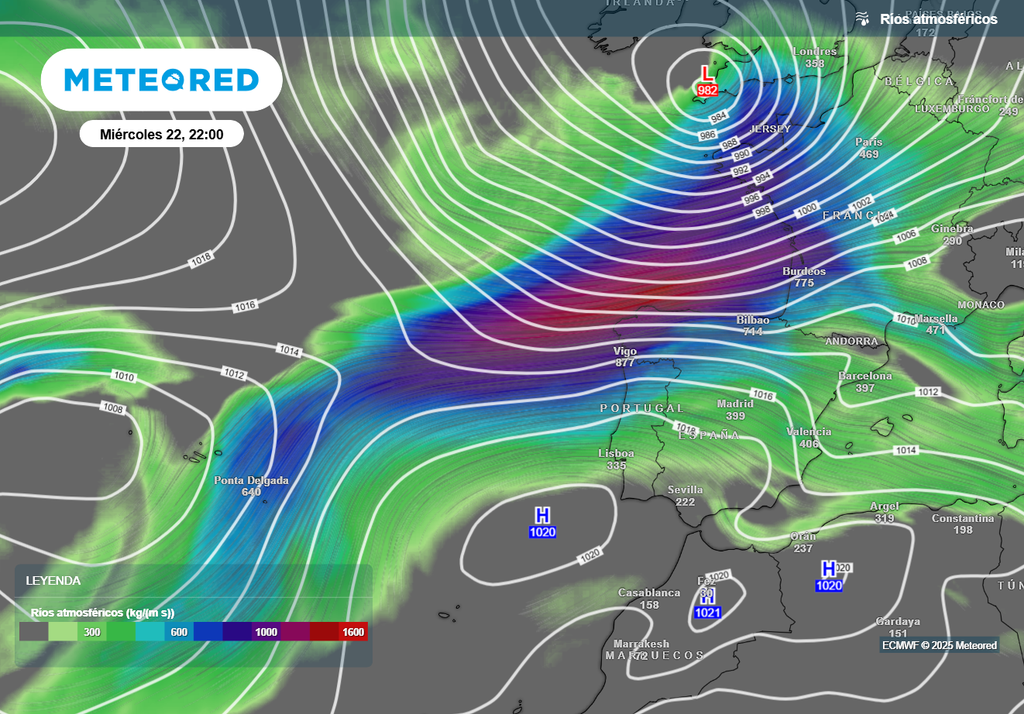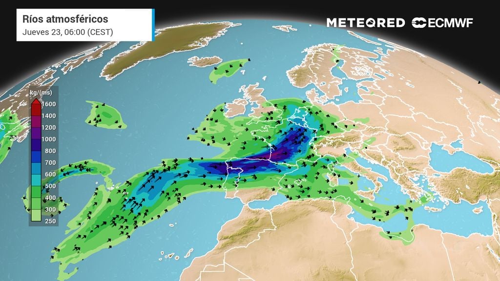 Según nuestro modelo de referencia, varios ríos atmosféricos o de humedad podrían impactar en la Península, reactivando las precipitaciones en ciertas zonas. Esta circulación atlántica se mantendrá prácticamente toda la semana, aunque parece que a partir del domingo el chorro polar presentará de nuevo ondulaciones que podrían traer vaguadas o alguna dana a las inmediaciones de nuestra geografía.