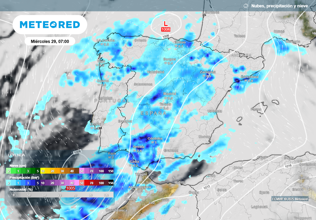 Entre el martes y el miércoles las lluvias serán bastante generalizadas, según nuestro modelo de referencia.