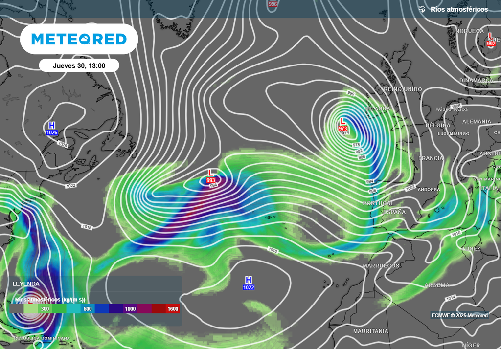 Estas bajas canalizarán masas de aire muy húmedas e incluso algún río de humedad hacia la Península.