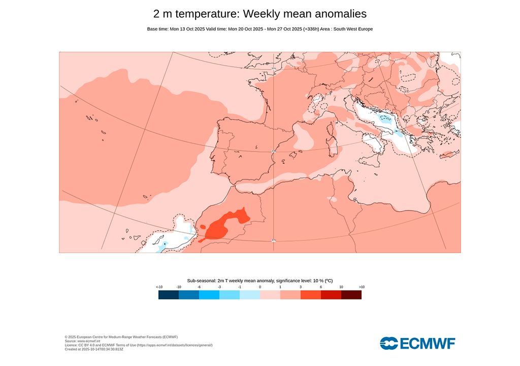 De cara a los últimos días del mes, la situación no variaría mucho desde el punto de vista térmico, por lo que octubre en general se podía despedir con ambiente muy suave. Eso sí, en puntos del norte de Baleares, norte de Cataluña, litoral cantábrico, Galicia y Canarias no se aprecian de momento anomalías especialmente significativas.