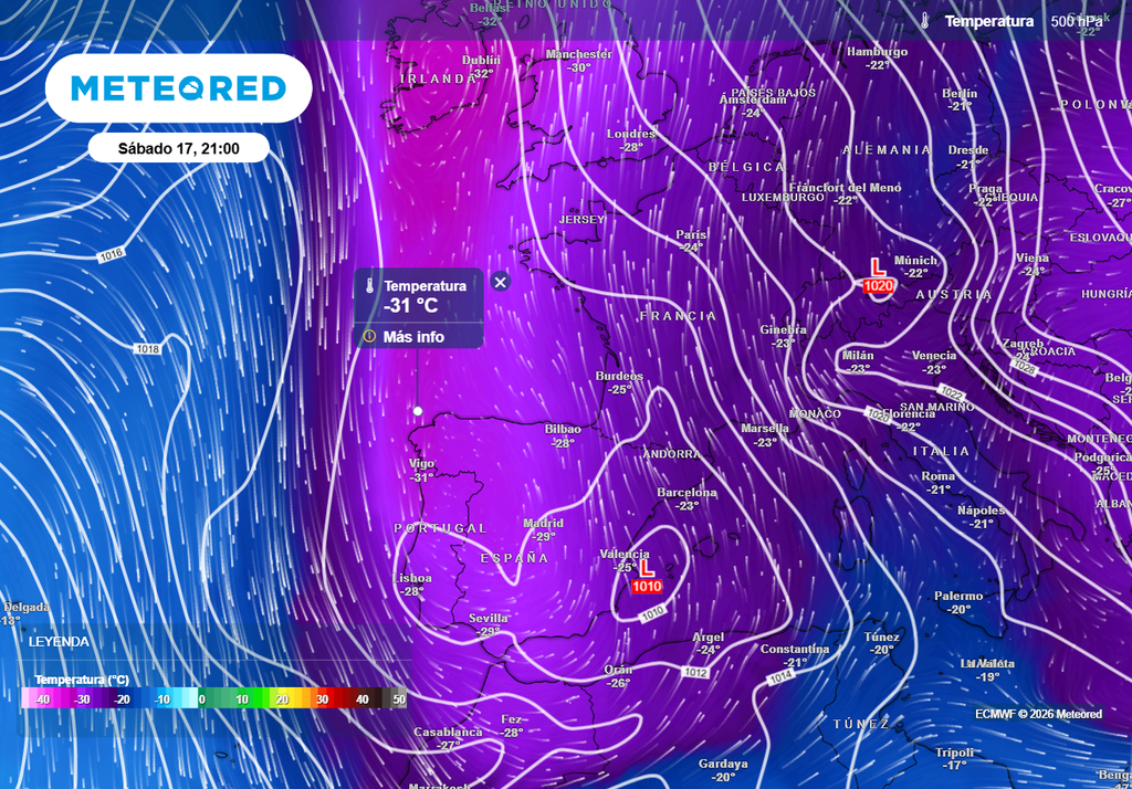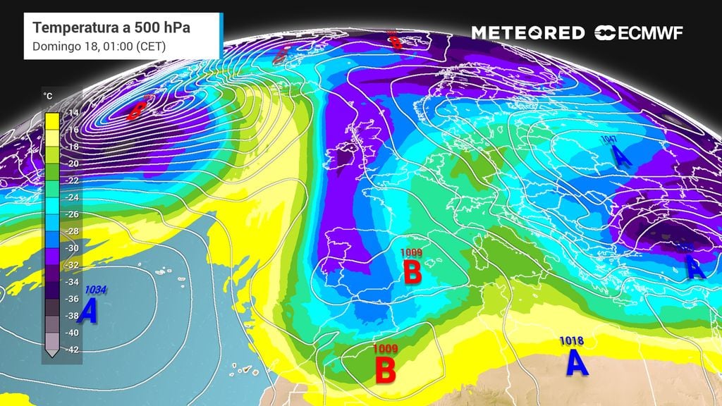 Un descuelgue de aire muy frío procedente de Groenlandia afectará a España este fin de semana. Esto favorecerá la formación de varios centros de bajas presiones en nuestro entorno, dejando lluvias localmente fuertes y nevadas en varias comunidades.