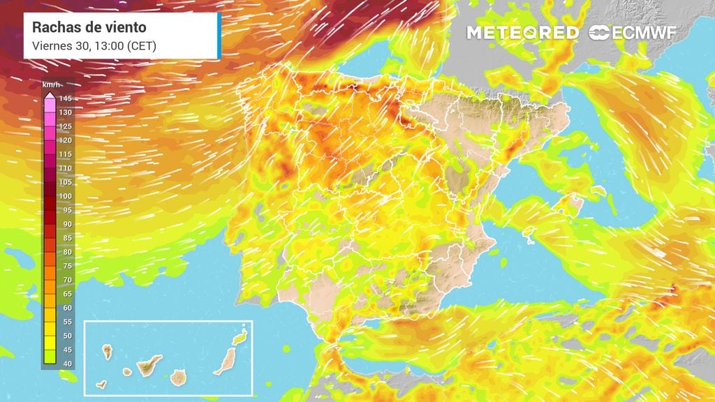 En amplias zonas del centro y sur peninsular predominan vientos sostenidos de componente oeste y sur que superan los 40 a 60 km/h, pero lo más significativo son las rachas, mucho más intensas y potencialmente dañinas. En numerosos observatorios ya se han registrado valores muy elevados, confirmando la severidad del episodio.