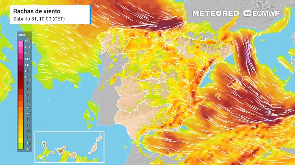 Eso sí, las rachas de más de 80-90 km/h están aseguradas en buena parte del este de Andalucía, Región de Murcia, Comunidad Valenciana, Baleares y Cataluña. También en Albacete el viento será noticia. Desde la tarde el viento tenderá a perder intensidad, excepto en Mallorca, soplando aún con fuerza en la madrugada del domingo, pero ya de forma más puntual.