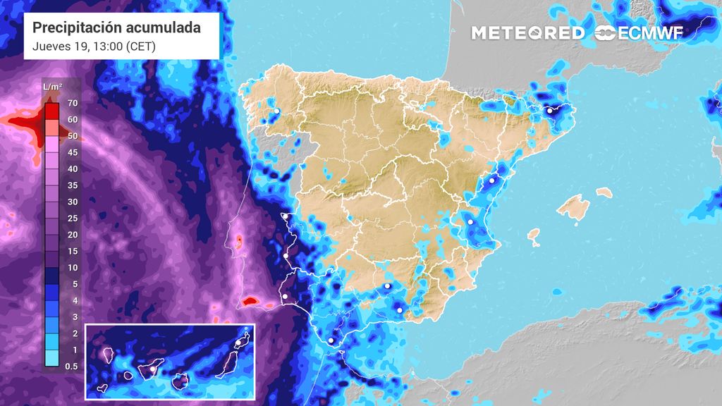 En esta primera mitad de la semana sus efectos en España serán muy dispares, dependiendo de la comunidad. Como ya explicamos en Meteored, la situación más adversa se prevé en Canarias, donde el temporal de lluvia y viento será muy importante. No obstante, mañana en algunas provincias de la Península notarán su influencia. La inestabilidad irá a más el fin de semana, cuando el bloqueo anticiclónico cederá.