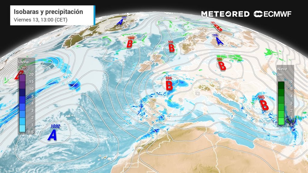 Bajo la vaguada cargada de aire frío que apuntará hacia el norte de la España peninsular entre el viernes y el sábado se desarrollará una zona depresionaria en superficie. Debido a la interacción del aire ártico, la orografía y el Mediterráneo, se producirá una ciclogénesis (básicamente se trata del proceso de formación de una borrasca) en el golfo de León. En la jornada del sábado la baja resultante se irá desplazando hacia Italia.