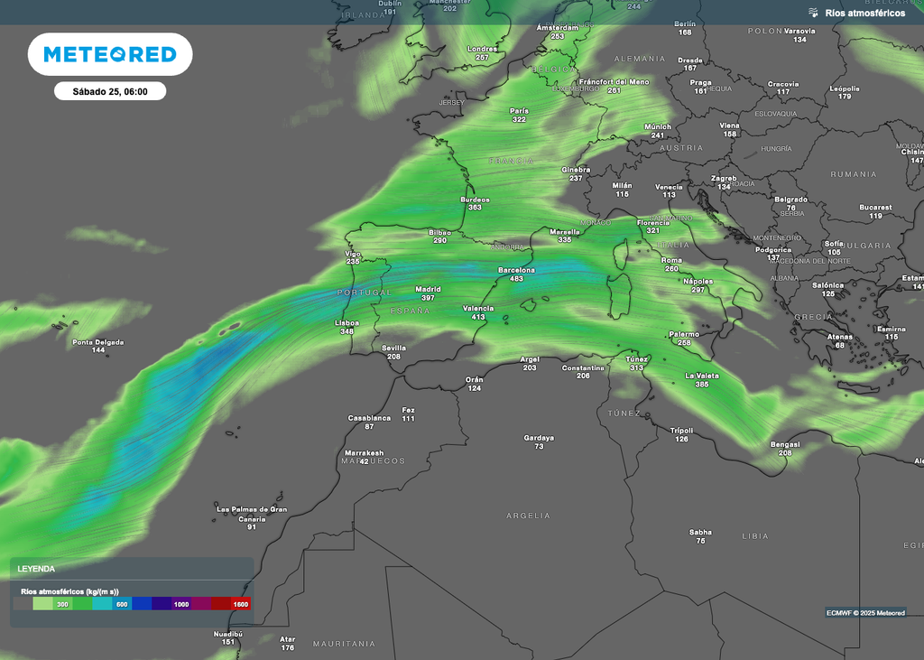 Tras el paso de esta borrasca, este próximo fin de semana, un nuevo frente prácticamente estacionario y alimentado por un pequeño río atmosférico con alto contenido de humedad quedará situado al sur de la meseta norte y sobre el Sistema Ibérico, dejando más lluvias que pueden ser persistentes y acumular hasta 40 l/m2 en 12 horas en zonas extensas.