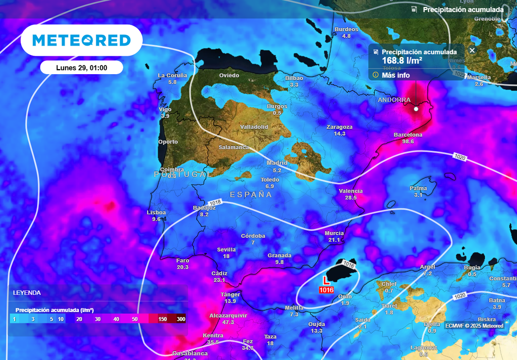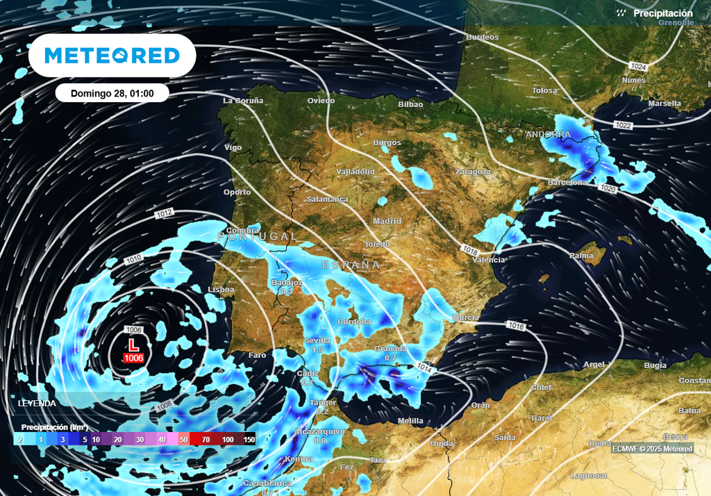 Una borrasca fría se situará el sábado al suroeste de la España peninsular y traerá más precipitaciones fuertes, con acumulados importantes e incluso tormentas y fuertes rachas de viento