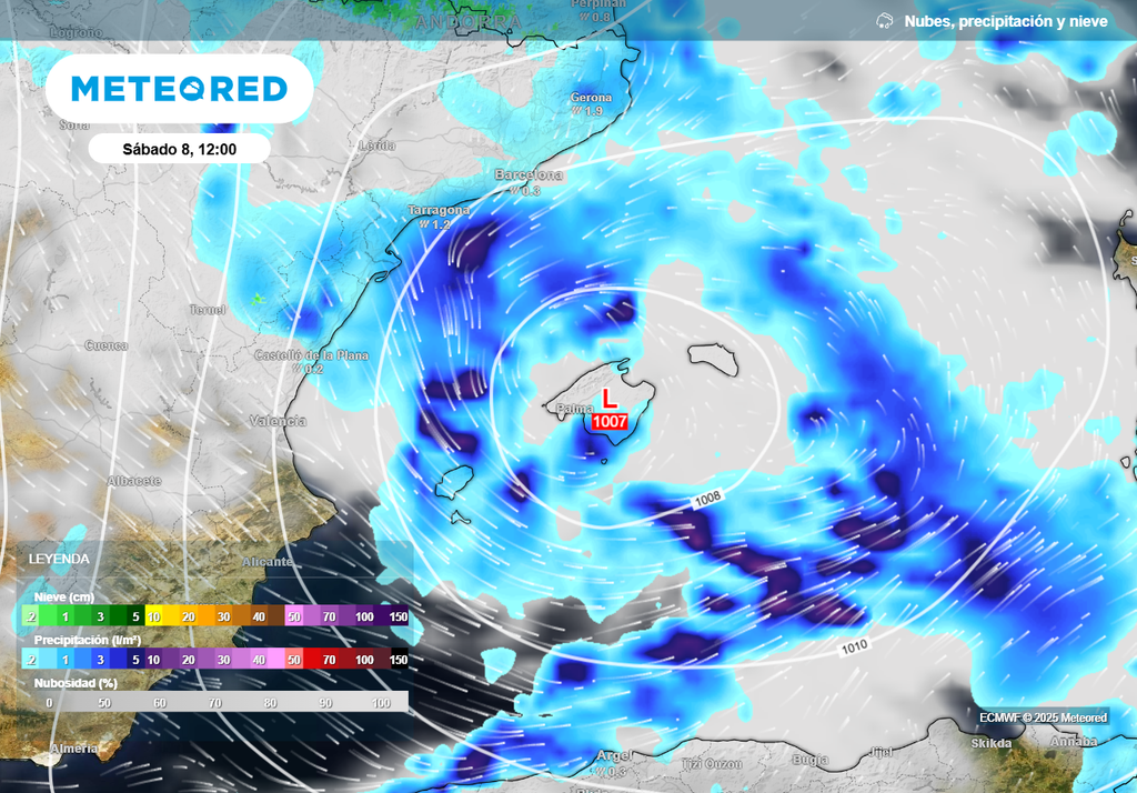 Una ciclogénesis hará que Baleares se lleve la peor parte: el próximo frente con lluvias se enroscará sobre las islas