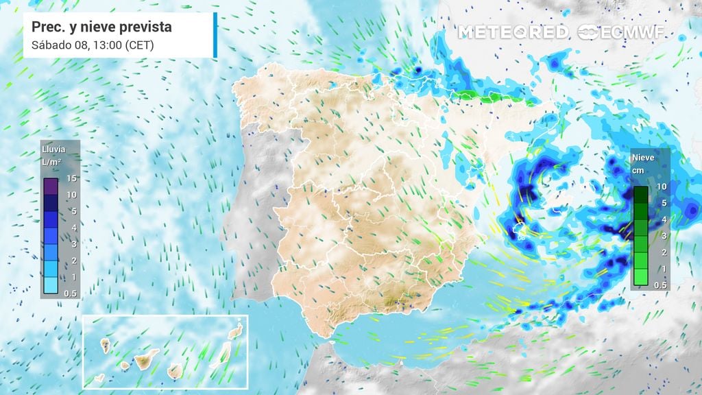 Según el modelo europeo, las lluvias serán localmente intensas y persistentes, con acumulados que podrían superar los 20 l/m² en una hora. Además, se espera un aumento del viento del norte y nordeste, que podría alcanzar rachas fuertes en zonas costeras y de montaña, generando oleaje adverso con mar combinada de 3 a 4 metros.