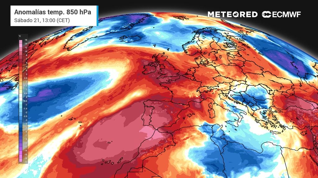 La cresta estará muy bien sustentada en niveles bajos por un anticiclón. Por otra parte, se instalará una masa de aire anormalmente cálida para las fechas sobre el suroeste del continente europeo en las siguientes jornadas, afectando de lleno a España. En amplias zonas se superarán los 20 ºC, e incluso en puntos de Andalucía y de la vertiente mediterránea pueden rondar o alcanzar los 25 ºC. También en algunas zonas de Canarias rondarán estos registros.