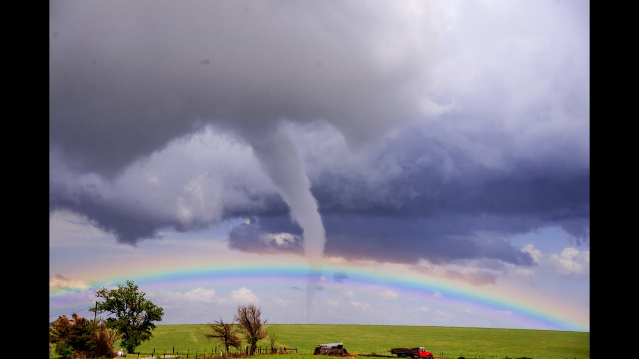 Pocas veces se fotografía una supercélulas, un tornado y un arco iris, todos muy fotogénicos