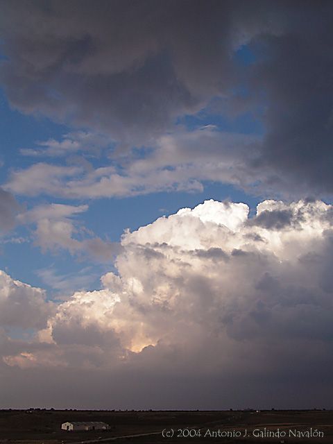 Iniciado un seguimiento con vehículo, como saludo de bienvenida, unos altivos Cumulus congestus entre los que se refugia un Pileus...
