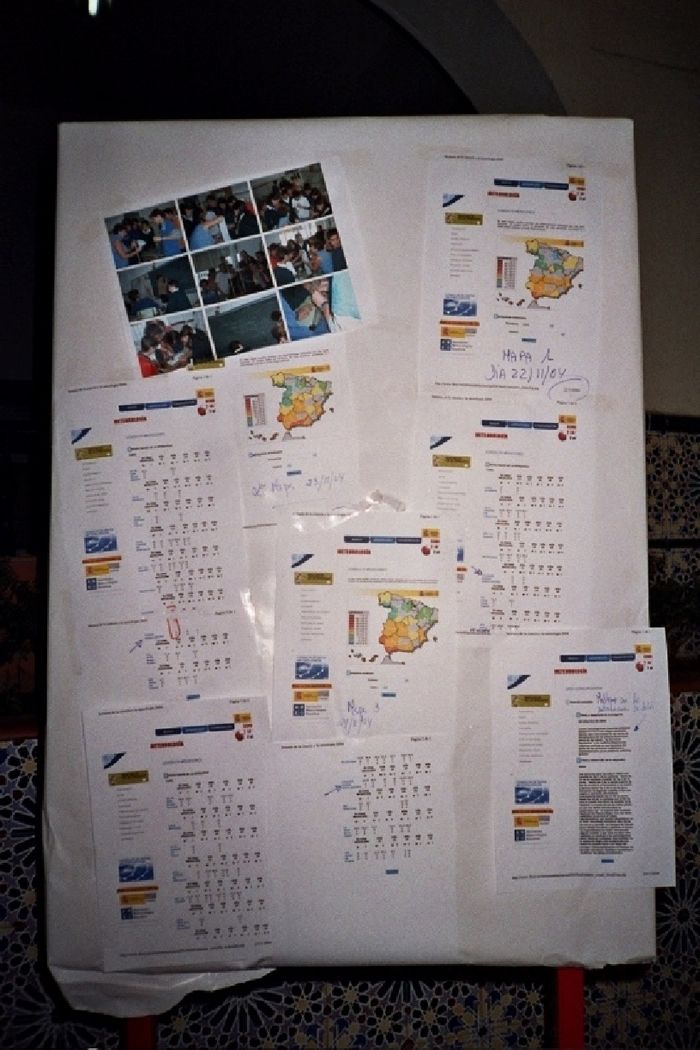 3º) Elaborar la cartelera informativa: imprimir y exponer las hojas de datos que se van tomando, imprimir y exponer los mapas que a diario se vayan colgando en la página ...