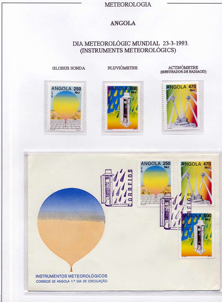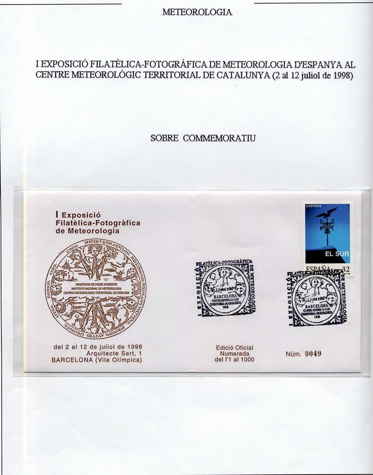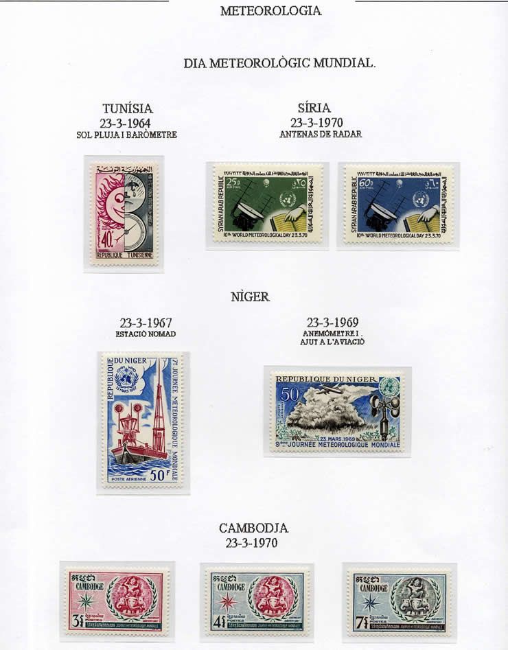 Es curioso observar en sellos de todo el mundo una historia de la meteorología, con aparatos de medición, cartas, satélites, días meteorológicos mundiales, etc. España tiene una carta postal y un sello conmemorativo del centenario del Observatorio del Ebro, en Tortosa (Tarragona).