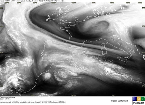 Fig 17. Imagen del satélite Meteosat-8 de WV para el día 26 a las 06 UTC. © 2006 EUMETSAT-Meteocat.
