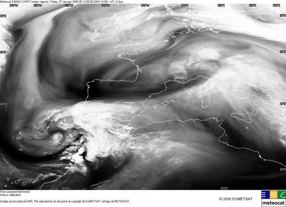 Fig 18. Imagen del satélite Meteosat-8 de WV para el día 27 a las 12 UTC. © 2006 EUMETSAT-Meteocat.