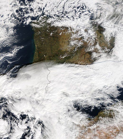 Al día siguiente, toda la inestabilidad y la masa de aire frío sigue trasladándose hacia el S, penetrando ya en territorio africano. La cota de nieve en la Península comienza a ascender con rapidez, y la superficie nevada del día anterior se ve sensiblemente reducida, como es posible observar en la última imagen de alta resolución (ver figura 23).