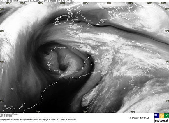 Fig 21. Imagen del satélite Meteosat-8 de WV para el día 29 a las 06 UTC. © 2006 EUMETSAT-Meteocat.