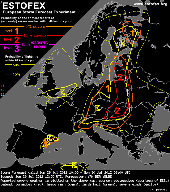Estofex y su predicción de convección severa para hoy en la Península (29 jul 2012)
