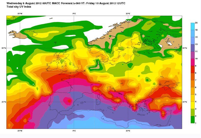 El índice de UV total también será elevado para el día 10 de agosto sobre el mediodía. Cuidado con las quemaduras solares si no estás bien protegido.