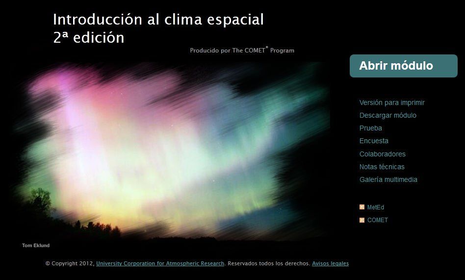 Este módulo presenta un panorama general de los procesos del clima espacial, sus impactos en la Tierra y la actividad humana, y las tecnologías empleadas para pronosticar los eventos de clima espacial. El módulo se propone brindar a los pronosticadores del Servicio Nacional de Meteorología (National Weather Service, NWS) de EE.UU. conocimientos básicos de meteorología espacial y de las operaciones del Centro de Predicción del Clima Espacial (Space Weather Prediction Center, SWPC) de la NOAA. El material también será de interés para un público general.