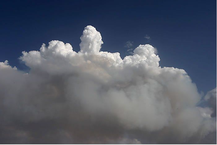 Nos preguntábamos: ¿Cómo se diferencian los pirocúmulos del resto de las nubes cumuliformes en la imagen anterior y por qué? Y trasladábamos la pregunta a los diferentes foros de meteorología para su respuesta. Estas fueron diversas, y muchas de ellas concordantes. Veamos algunas de ellas: