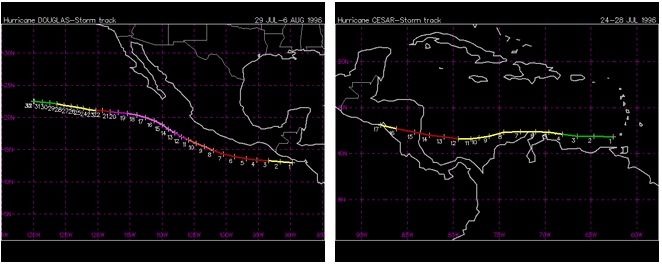 Cesar fue la tercera tormenta tropical nombrada y el segundo huracán de la temporada de huracanes del Atlántico de 1996. El sistema se formó en el sur del Mar Caribe y afectó a varios países de América del Sur antes de cruzar Nicaragua y entrar en el Pacífico oriental, donde fue renombrado como Douglas. El ciclón tropical mató a 113 personas en América Central y del Sur y dejó 29 desaparecidos, principalmente debido a inundaciones y deslizamientos de tierra.