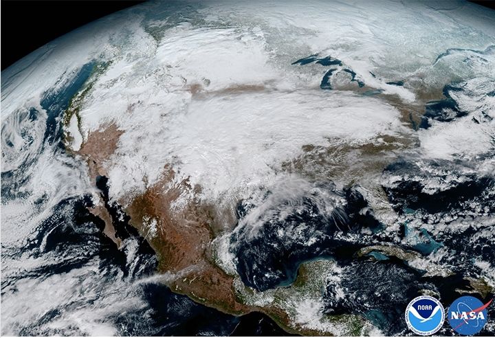 La última imagen muestra un primer plano de América del Norte ese día, como una vasta borrasca de invierno extendida a través del continente.