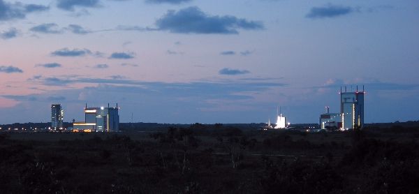Antes del anochecer con el Ariane-5 al fondo