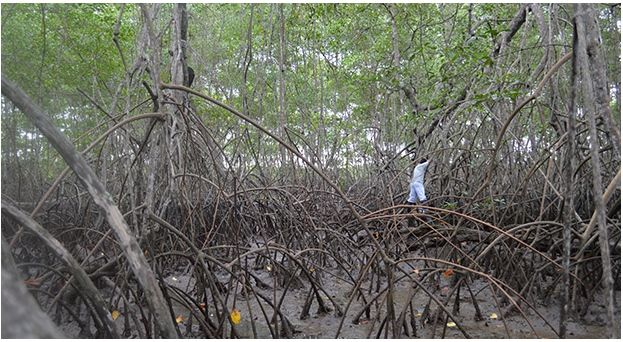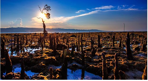 - Formando barreras frente a las tormentas: Los manglares, los arbustos halófilos o los árboles pequeños que crecen en el agua salada de las zonas costeras, crean una barrera frente a las olas destructivas y mantienen los sedimentos en su lugar a través de sus sistemas de raíces submarinas. Esto protege a las comunidades costeras en épocas de ciclones u otras tormentas tropicales. De hecho, los científicos han concluido que los manglares podrían haber reducido los daños causados por el ciclón Nargis en Myanmar en 2008, ya que en algunas zonas de la costa se había perdido hasta un 50% de los mismos.