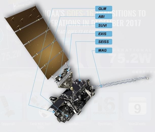 Cuando se lanzó el GOES-16 en noviembre de 2016, se lo conocía como GOES-R, pero pasó a llamarse GOES-16 una vez que alcanzó la órbita geoestacionaria.