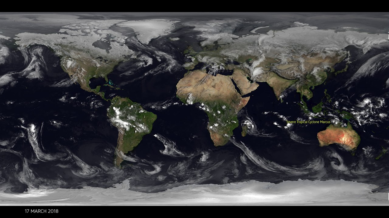 EUMETSAT genera una serie de videos meteorológicos mensuales donde se muestra una combinación de imágenes infrarrojas de los satélites geoestacionarios y de órbita polar de EUMETSAT, NOAA, CMA y JMA que, en conjunto, observan continuamente la Tierra superficie las 24 horas del día, los 365 días del año.