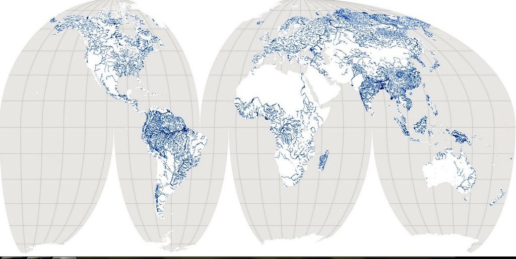 El nuevo conjunto de datos tiene muchos otros usos. Ya se ha utilizado para mejorar los modelos de inundación y para clasificar con mayor precisión los cuerpos de agua superficial entre lagos, canales y ríos. Allen también espera que se convierta en un conjunto de datos básicos para interpretar los datos del próximo satélite de Agua superficial y Topografía oceánica (Surface Water and Ocean Topography (SWOT) de la NASA, que medirá los cambios en las alturas de ríos y lagos a nivel mundial.Imágenes de NASA Earth Observatory por Joshua Stevens, usando datos de Allen, G. H., & Pavelsky, T. M. (2018). Historia de Adam Voiland.