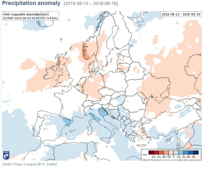 Aunque es bastante normal que en España se puedan vivir episodios de altas temperaturas en lo que queda de agosto de 2018 (7-31) todo parece indicar que el aire más fresco de lo normal se asentará sobre la Península debido al paso de borrascas y frentes asociados, con periodos de tormentas que dejarán precipitaciones en ciertas zonas de forma puntual. El patrón se parece al acaecido en junio y julio de 2018.
