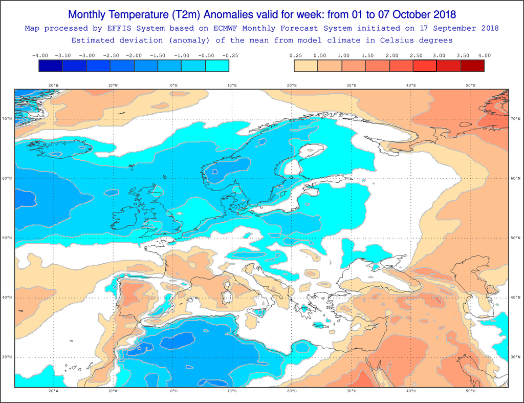 Así lo atestiguan los mapas previstos de anomalías de temperaturas del ECMWF para las próximas tres semanas donde serán positivas para gran parte de España con una señal muy clara: