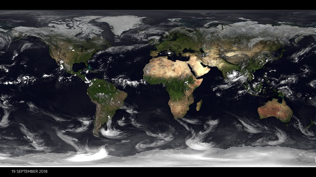 Se muestra una secuencia de algo más de 2:30 min. sobre el tiempo en todo el mundo durante septiembre de 2018.