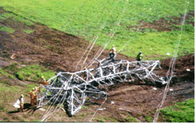 • Al línea 500 kv PALMAR- MONTEVIDEO A, entró en servicio el 16 de abril, a poco más de un mes del desperfecto y en un tiempo que podemos considerar todo un record para la magnitud del trabajo que se realizó.