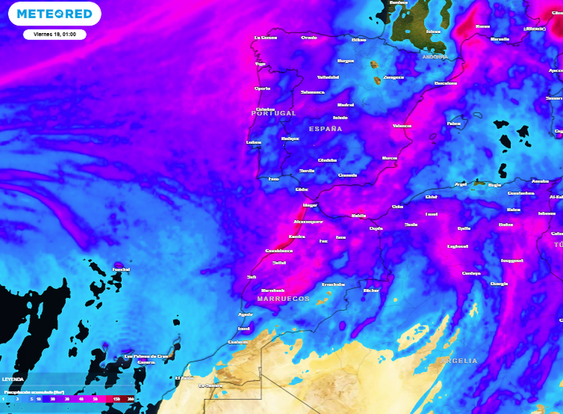 Para el jueves 18 y viernes 19, un escenario muestra la irrupción de esta baja hacia el interior de Argelia y Marruecos. Otro escenario es que la borrasca se situaría en la zona norte de dichos países con más repercusiones en el levante peninsular.