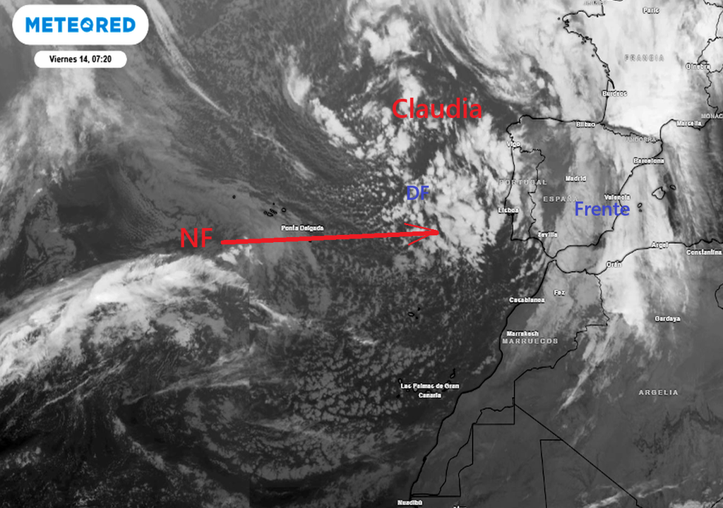 Este frente podría afectar a Canarias de forma colateral, dejando precipitaciones ligeras a moderadas, pero que no serían tan abundantes como las de días pasados. Claudia estará más tiempo con nosotros y en particular durante el fin de semana.