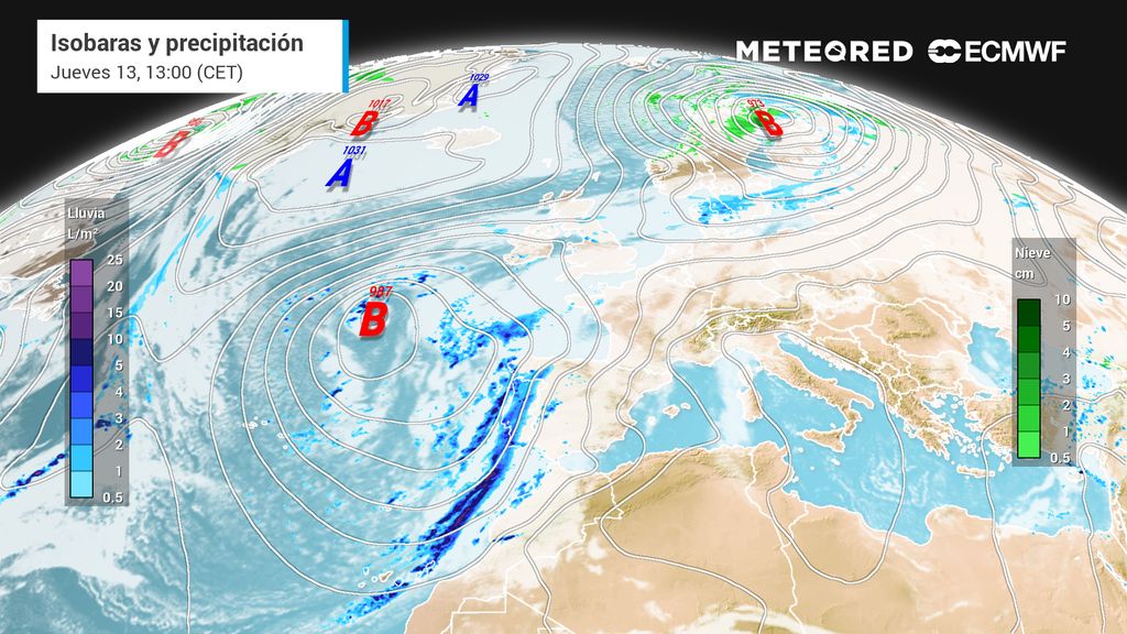 A mediados de semana, los frentes activos de Claudia barrerán la Península y Canarias de oeste a este dejando más precipitaciones en zonas anteriormente no afectadas.